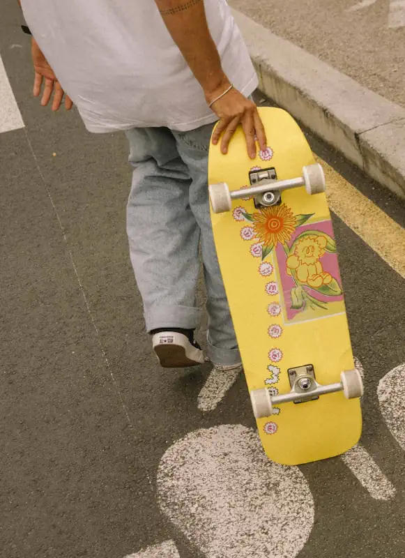 Du hast hier vorne und hinten Yow TKP Trucks 169mm Silver drauf, kombiniert mit YOW Eki 60mm 101A Rollen. Also traditionelle Street Trucks und harte Rollen die sich leicht sliden lassen. Damit ist es auch ideal für den Park.