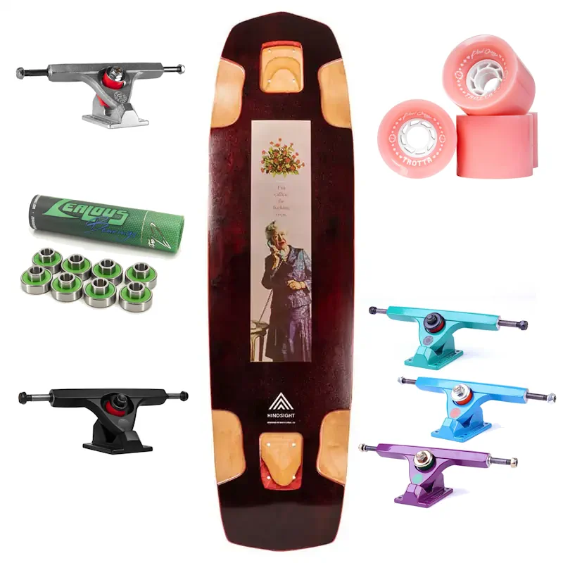 Made to be our most versatile board in the line up, the Hindsight is built compact with a functional kick-tail and mellow features making it perfect for tight urban maneuvering and free-riding. Big wheel flares, mild w, and rocker work together to create pockets that lock your feet in but don’t get in the way when doing tricks. Built with 6 plys of maple and 2 layers of fiberglass this board is lightweight but stiff enough to be stable on high speed mountain roads.